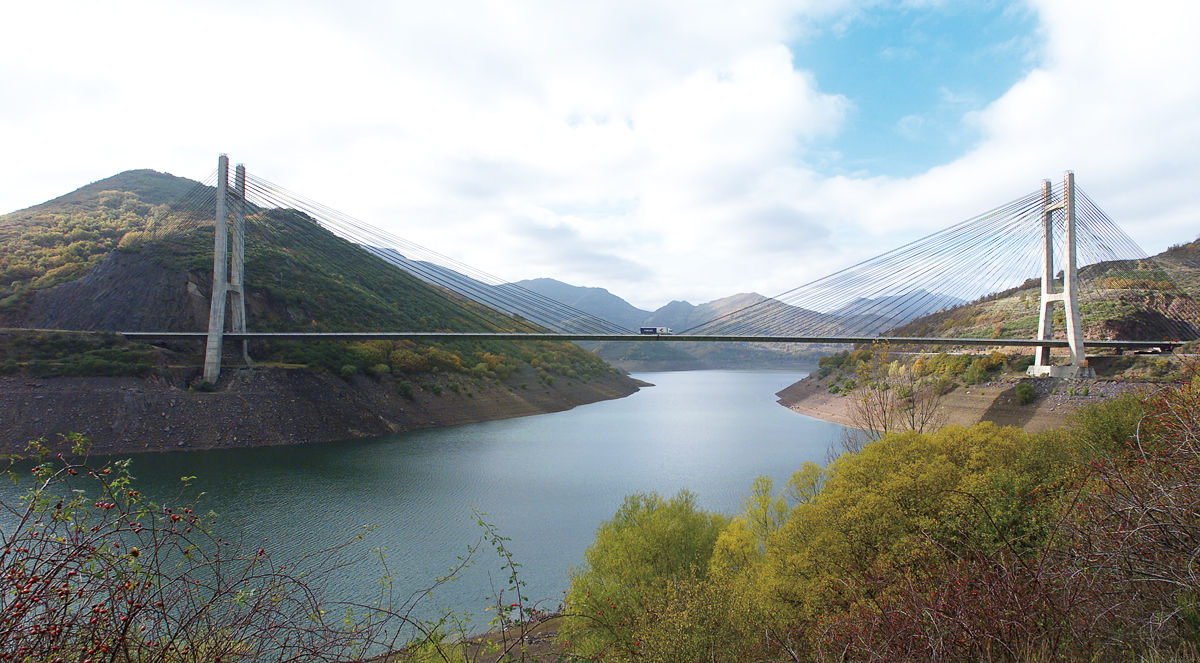 Se inscriben igualmente en el capítulo de obras singulares los viaductos, entre los que destaca el puente atirantado Carlos Fernández Casado, sobre el embalse de Barrios de Luna, tanto por su belleza arquitectónica, como por la novedad de las soluciones técnicas aportadas en su construcción.